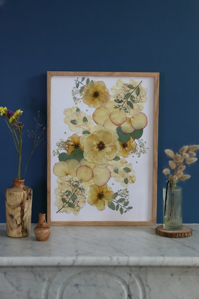 🎨 Chaque herbier est une pièce unique, fidèle à votre bouquet et à son histoire. Ne pas exposer à la lumière directe du soleil et/ou dans une pièce humide.