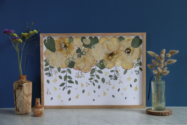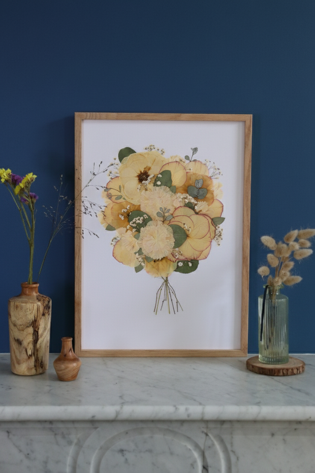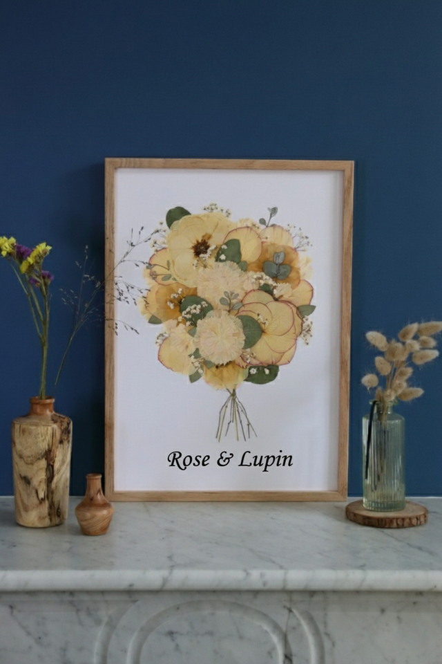 🎨 Chaque herbier est une pièce unique, fidèle à votre bouquet et à son histoire. Ne pas exposer à la lumière directe du soleil et/ou dans une pièce humide.